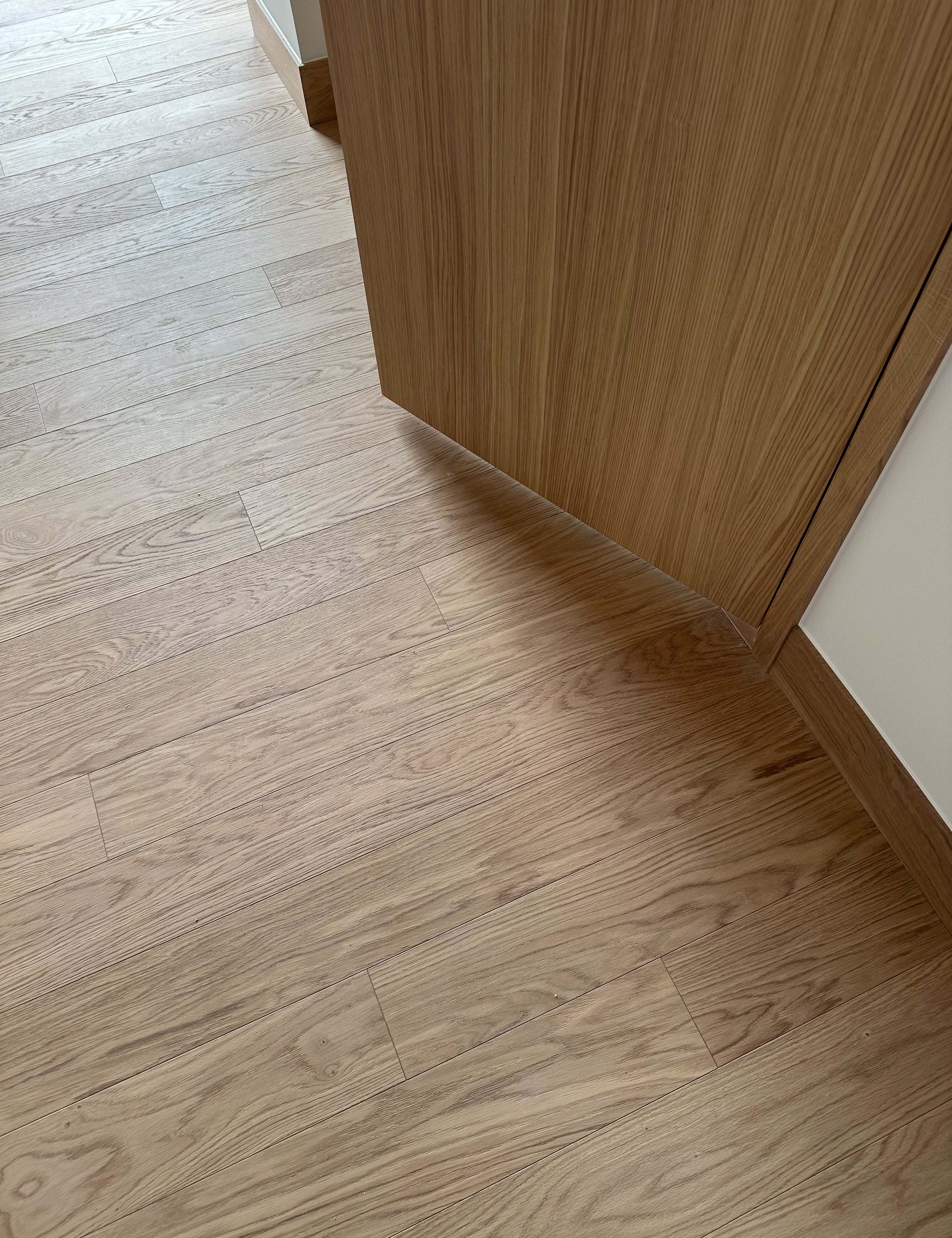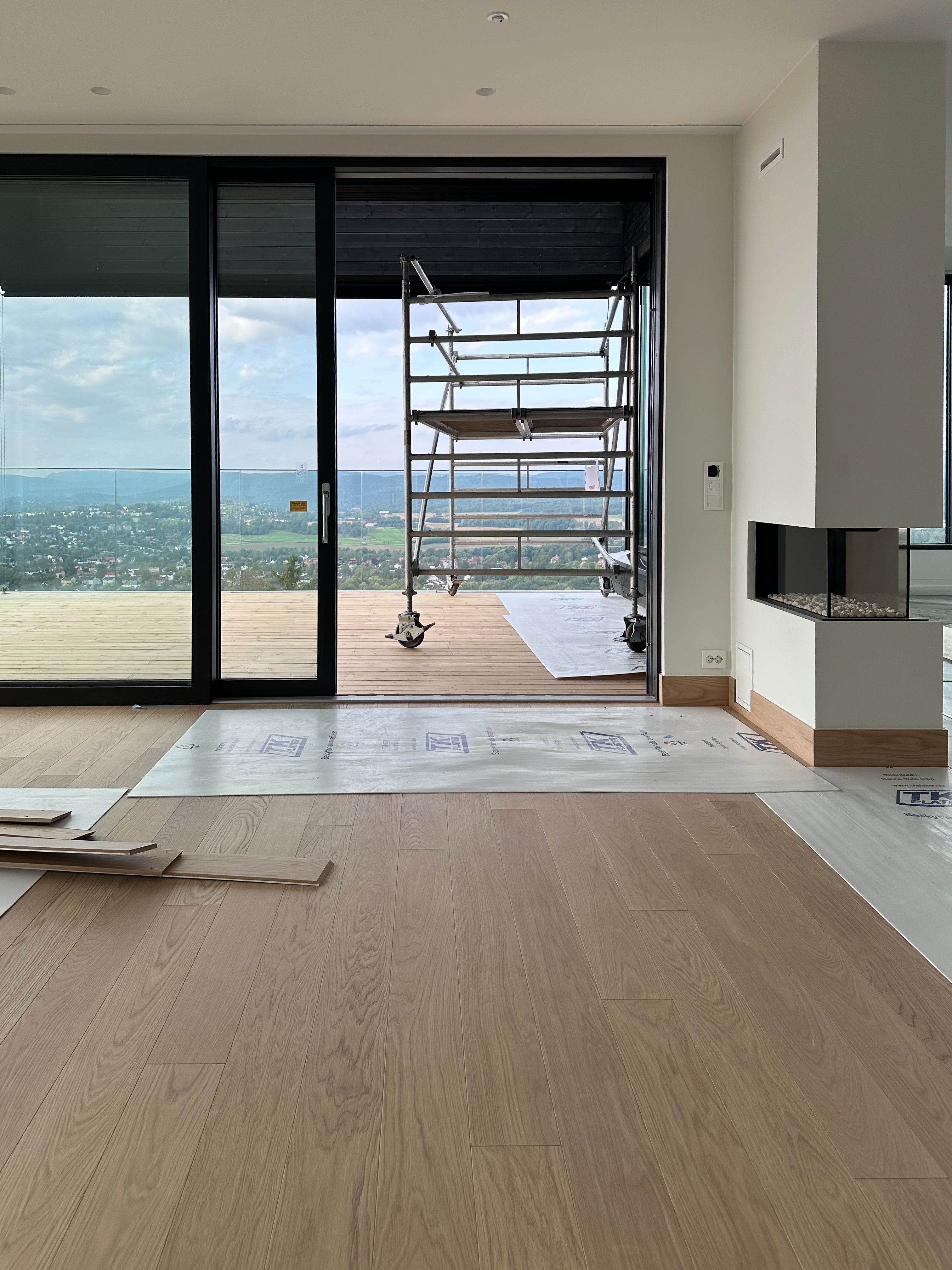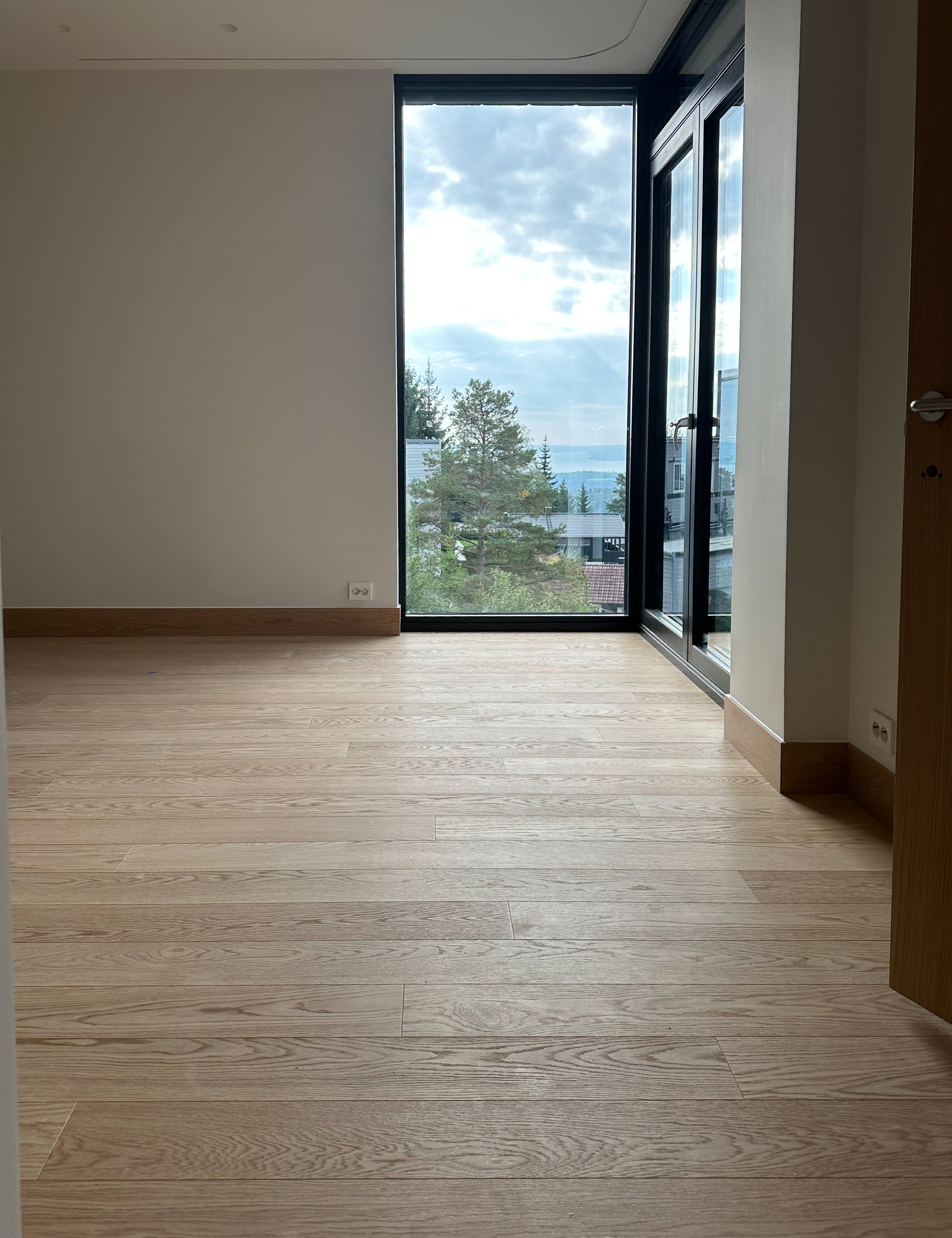 Fargen Snøhetta på 150 mm brede planker i en moderne leilighet på Holmenkollen.