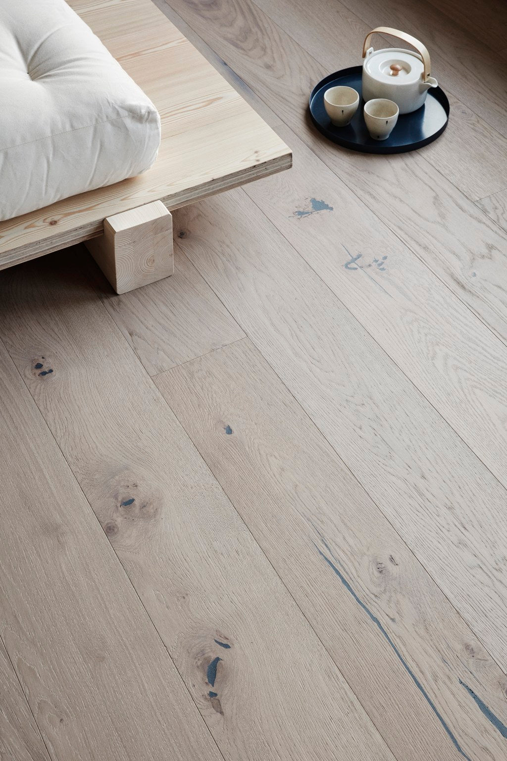 En gråaktig, klar fargetone som lar eikens naturlige fargetone skinne gjennom. Grey er tilgjengelig med børstet overflate, samt overflatebehandling i hardvoksolje eller matt lakk.