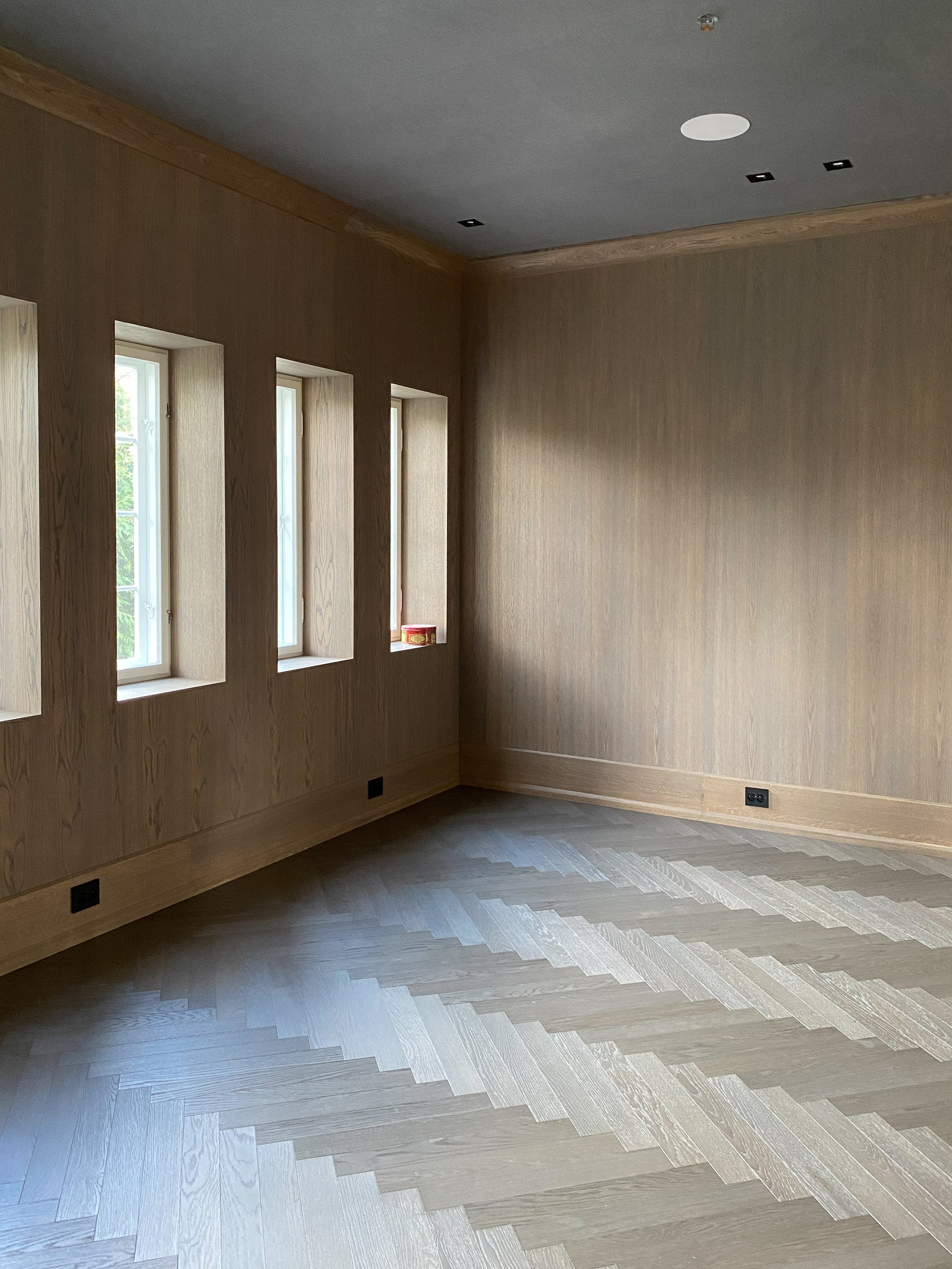En mørkegrå fargetone med subtile blåaktige og lilla fargetoner. Ylläs er tilgjengelig med børstet eller pusset overflate, samt overflatebehandling i hardvoksolje eller matt lakk.