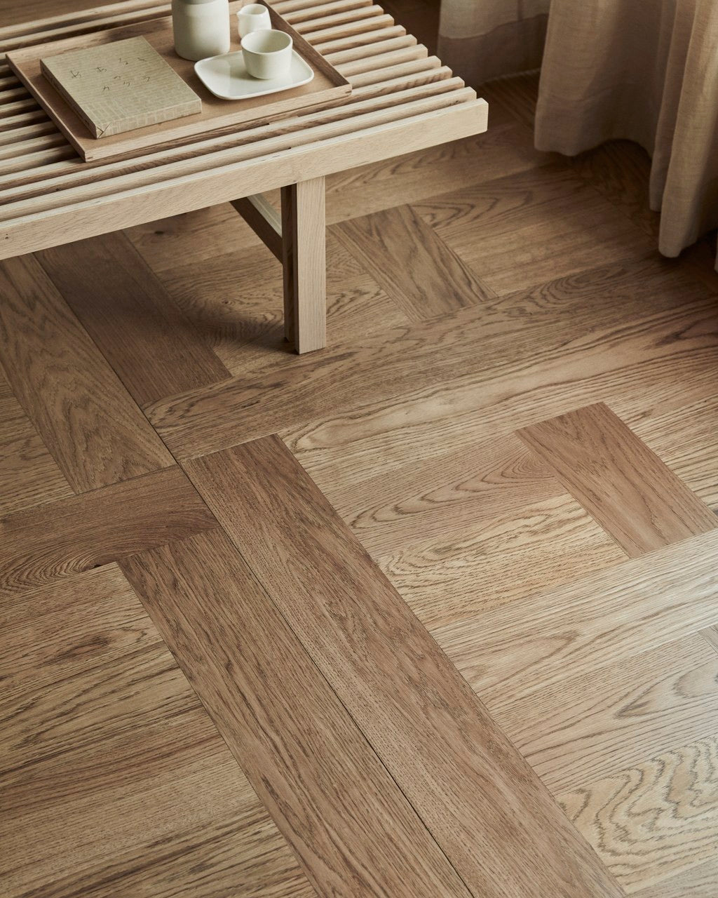 Utforsk mulighetene i vårt Design ditt gulv-konsept. Her finner du informasjon om mønstergulv. Velg mellom ulike bredder, nyanser og overflatebehandlinger, og kombiner gjerne med andre mønstre eller enstavsgulv i Design ditt gulv-konseptet for å skape et helhetlig hjem. Finn din favoritt og tilpass etter dine ønsker. Hvert gulv produseres på bestilling i Finland, med leveringstid på 4–6 uker.
