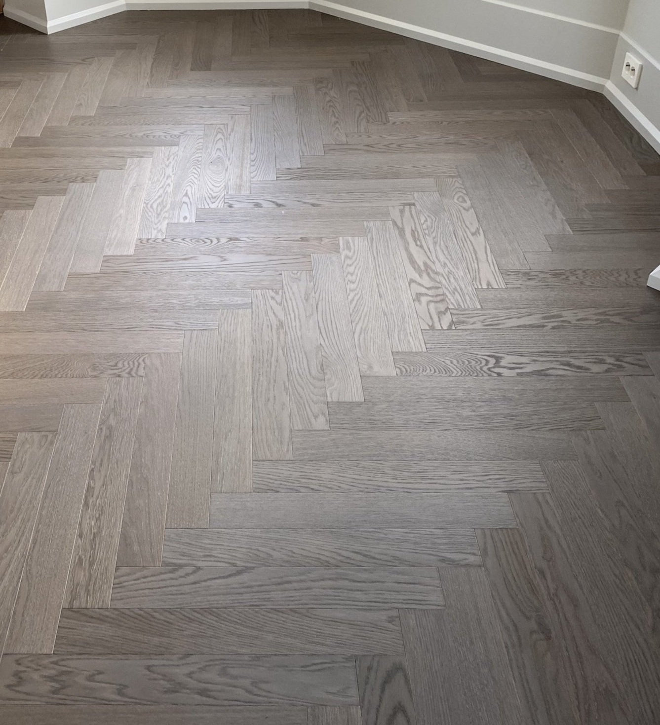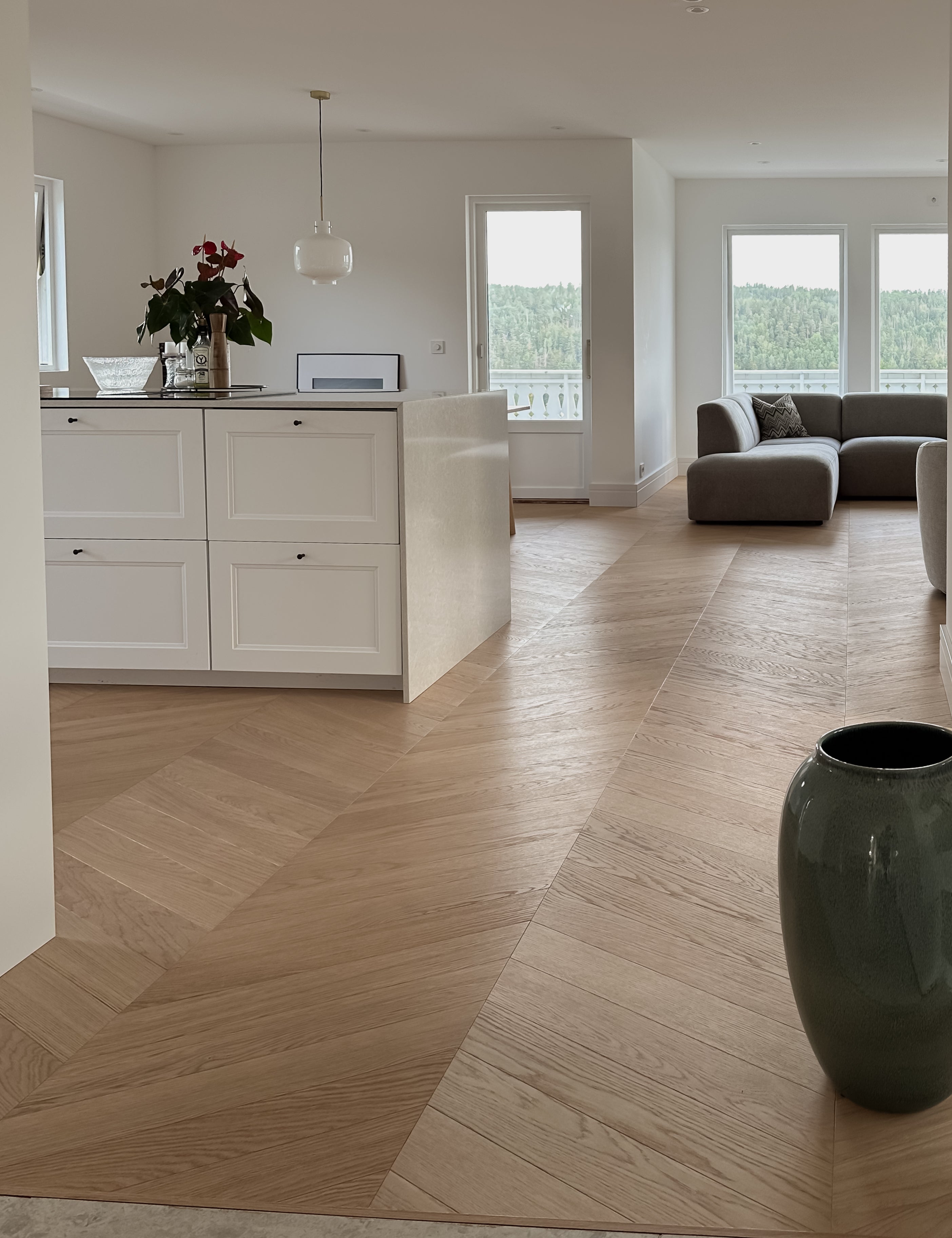 Lys Chevron eikeparkett i en enebolig i Asker.