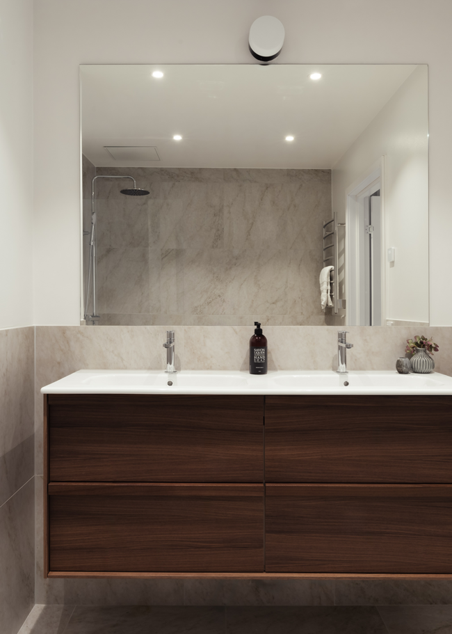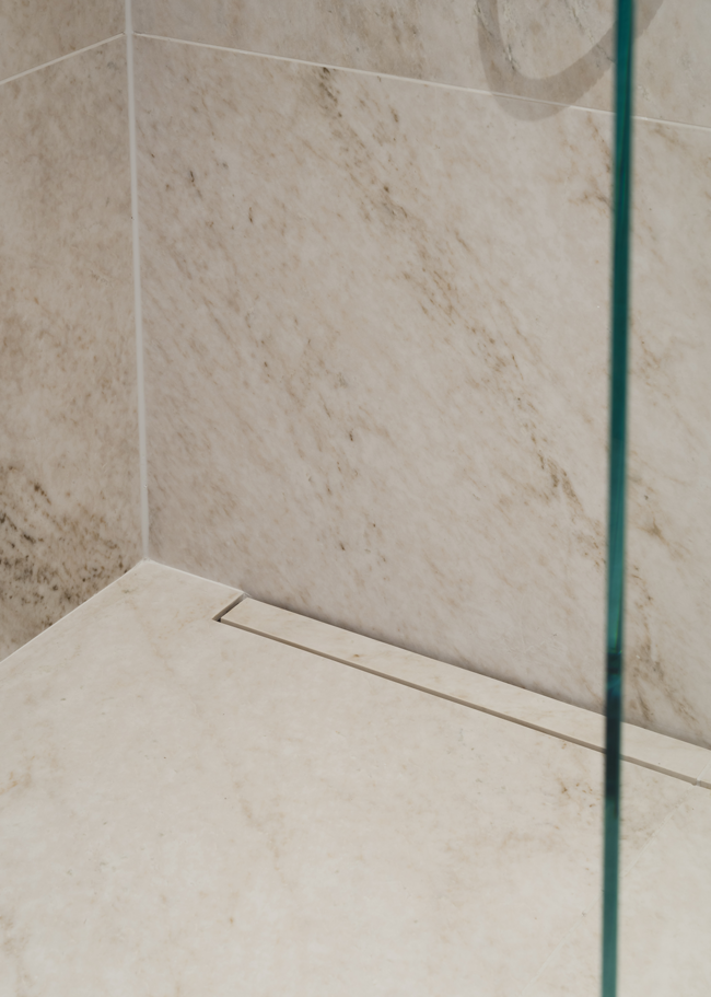 Glanshammar Honed i granittkeramikk har en lys, varm tone med antydninger til mørkere årer og en polert, fløyelsaktig overflate.