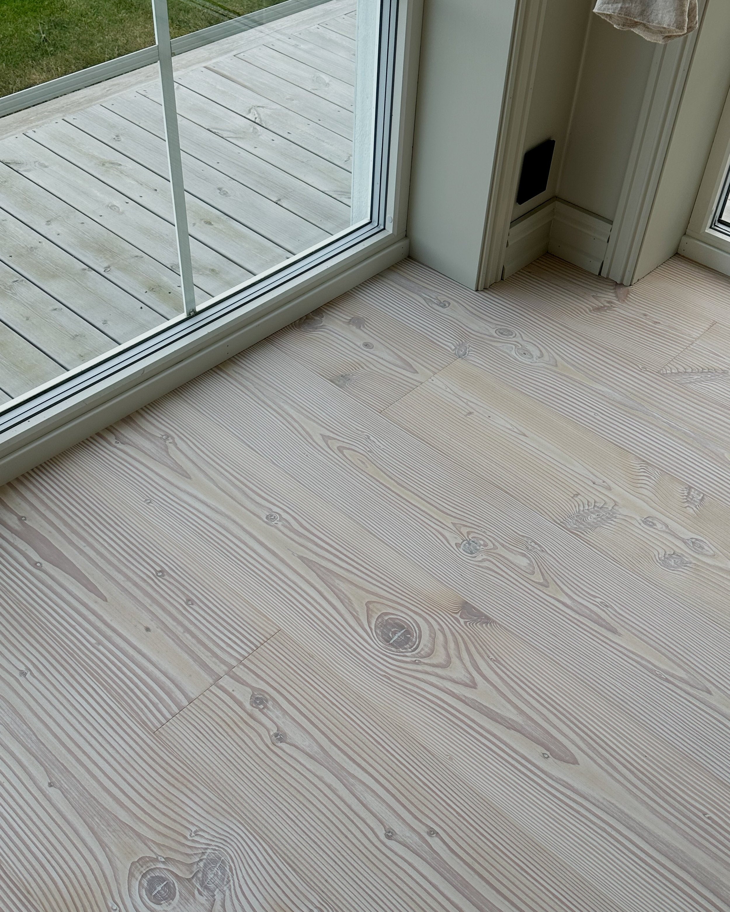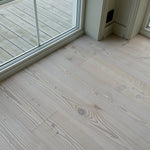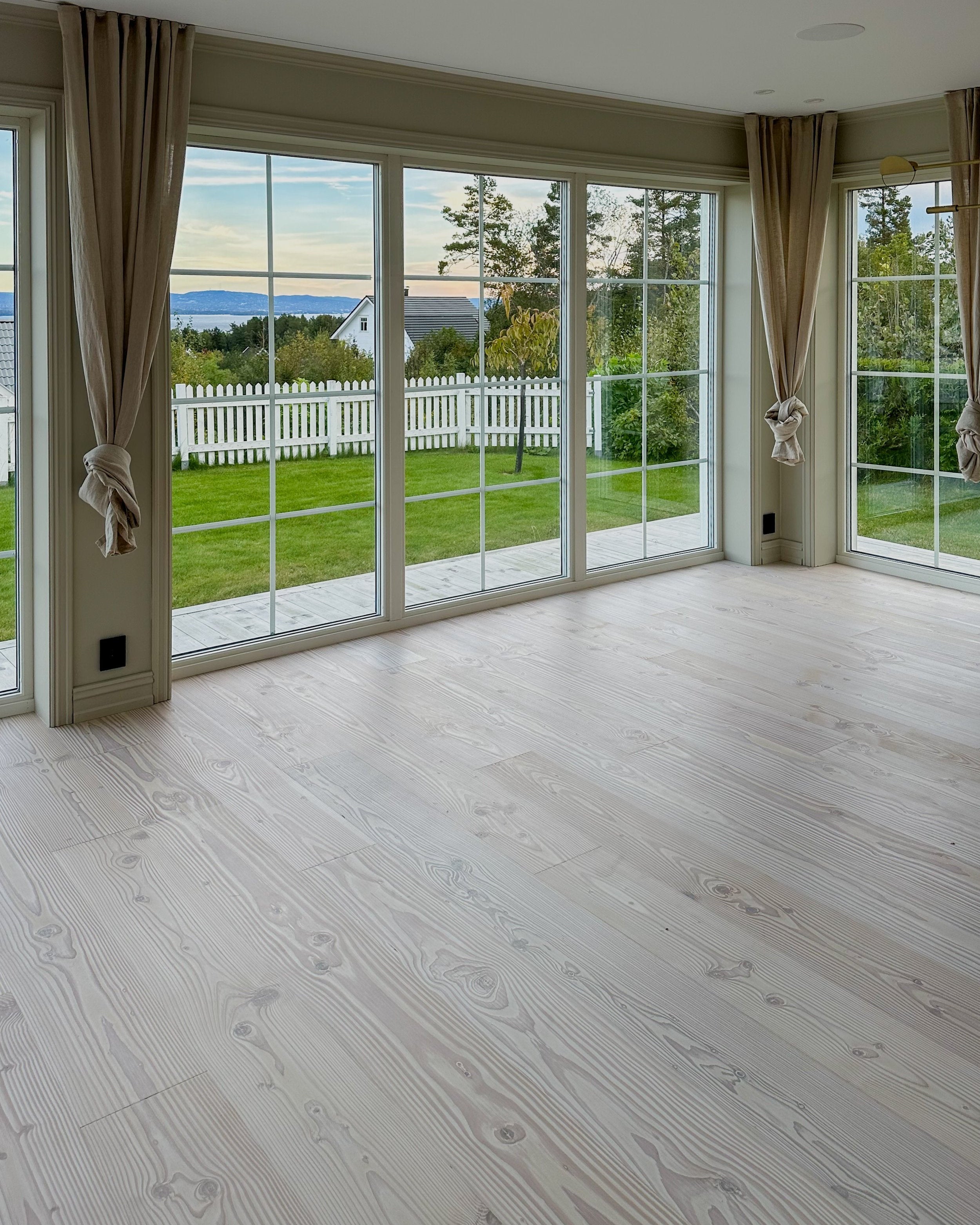 Double White i douglasgran er en svært lys og delikat nyanse. Den doble hvitpigmenteringen demper treets naturlige farge og kontraster, samtidig som strukturen og årringene fortsatt er synlige. Double White er tilgjengelig med børstet overflate og overflatebehandling i hardvoksolje.