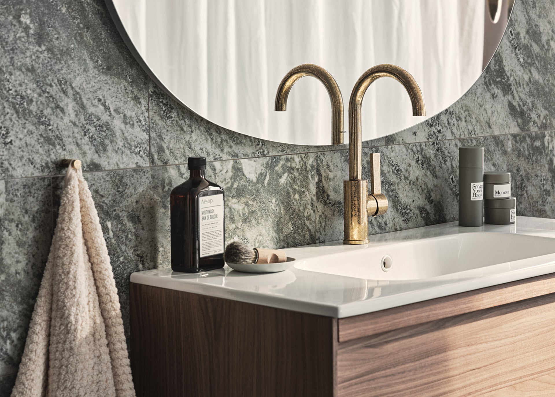 Kolmården er en granittkeramikk inspirert av den klassiske svenske marmoren med samme navn som har blitt utvunnet i Östergötland i flere århundrer. Serien har en matt overflate og varierer som marmor i mønster og nyanse fra grønn-svarte partier til lysegrønne og grå skifter.