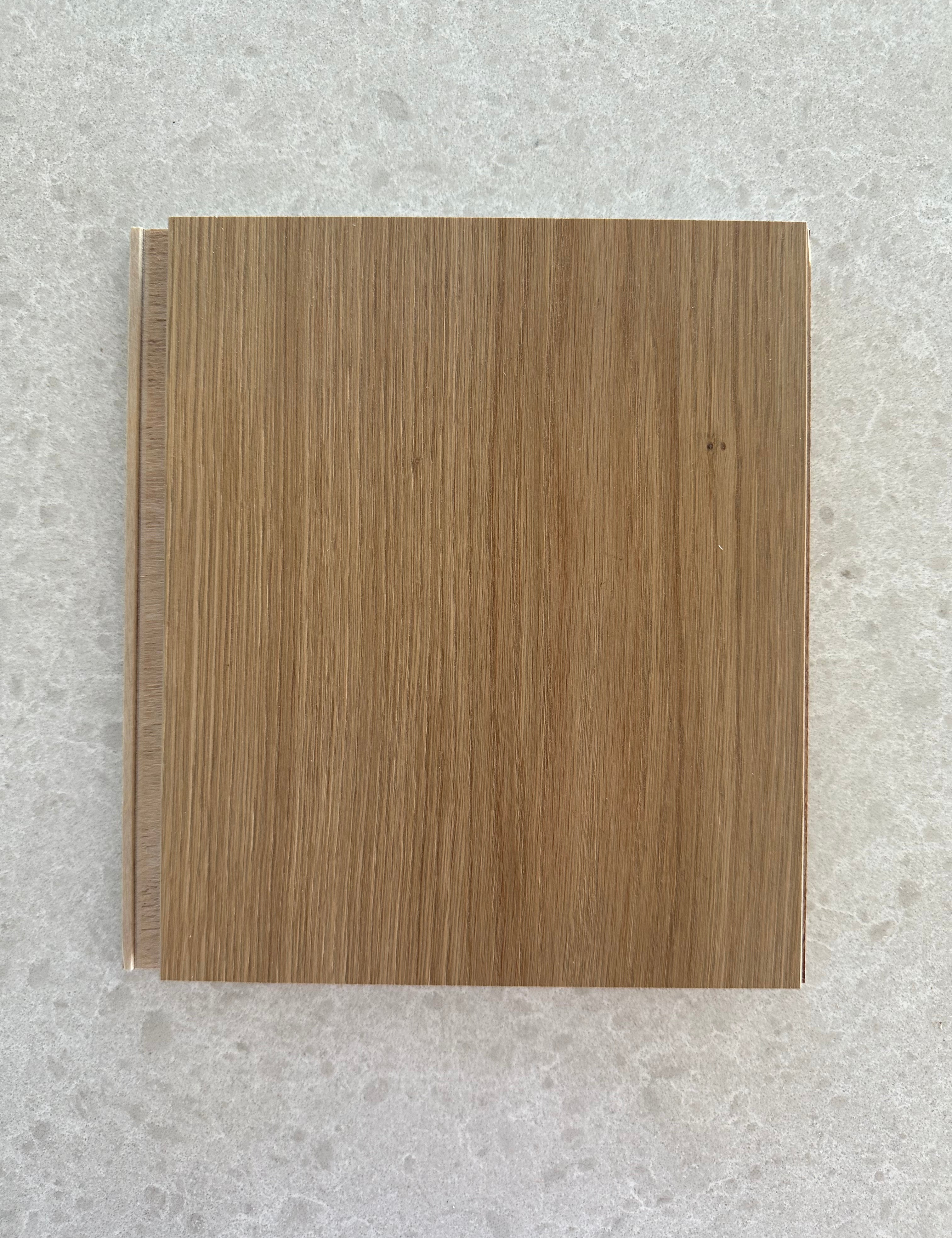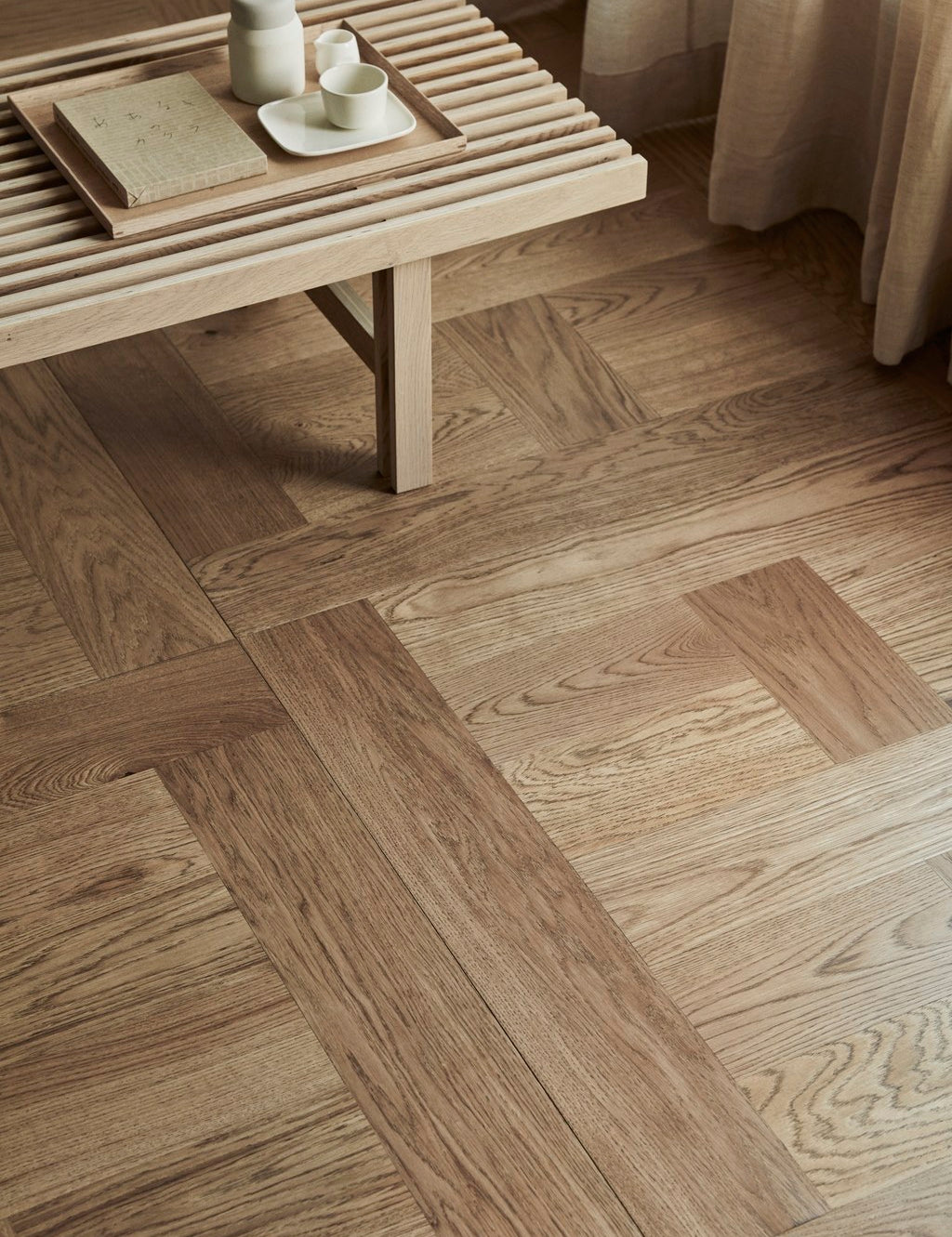 Et lamelloppbygd gulv består av flere lag tre som er presset sammen på tvers av hverandre, med et tykt slitesjikt av ekte eik på toppen. Dette gir langt bedre stabilitet enn tradisjonell parkett, og reduserer risikoen for sprekkdannelser og bevegelser i treverket. Resultatet er et gulv som tåler gulvvarme bedre, holder formen over tid og har lengre levetid.