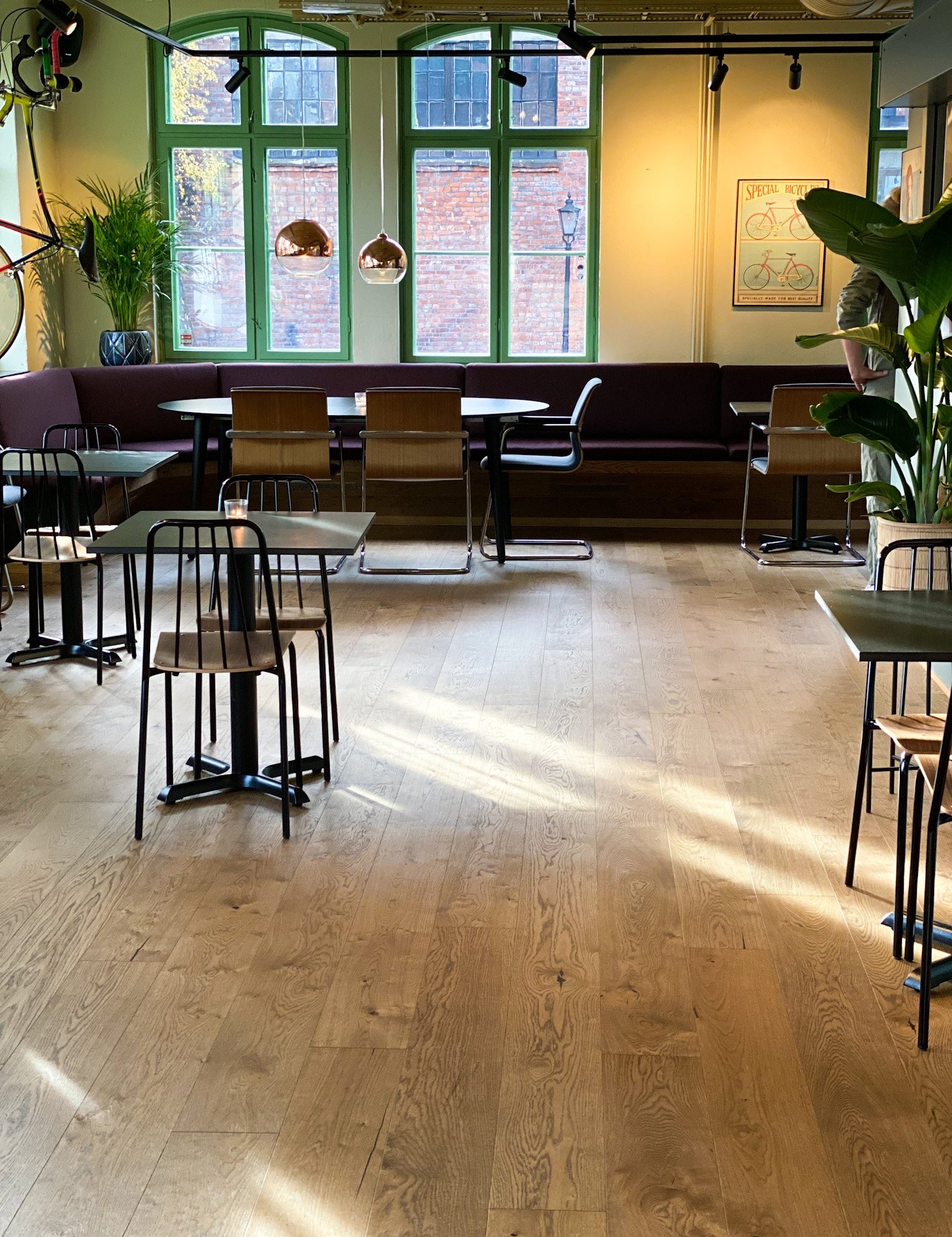 Regelmessig støvsuging og tørrmopping holder gulvet pent i hverdagen. Med riktig vedlikehold tilpasset overflatebehandlingen bevarer gulvet sitt uttrykk i mange år. Du kan bestille profesjonelt vedlikehold her