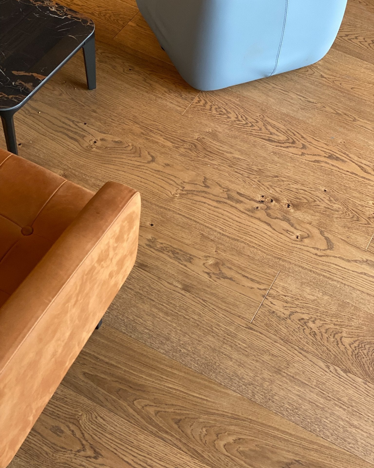 Sortering og mengden kvister avgjør hvor levende gulvet fremstår. Mer kvist og struktur gir et naturlig og rustikt uttrykk, mens roligere sortering gir et mer elegant og dempet preg.